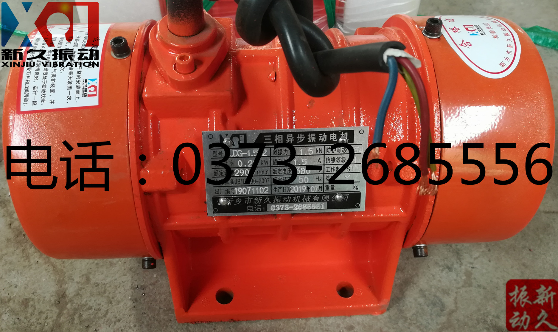 根據(jù)貴公司特殊要求訂制的2臺新久牌XJDG-1.5-2型振動電機,已通壹米滴答物流發(fā)出。運費、保價費已付清,預(yù)計四日左右到達。請保持手機暢通,注意查收。使用前請詳細閱讀振動電機使用維護說明書。