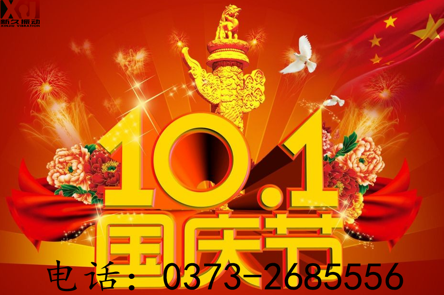 國慶節(jié)即將來臨,新鄉(xiāng)市新久振動(dòng)機(jī)械有限公司全體員工祝福您,愿你:一笑煩惱跑,二笑憂愁消,三笑心情好,四笑不變老,五笑興致高,六笑幸福繞,七笑快樂到,八笑收入好,九笑步步高,十全十美樂逍遙。